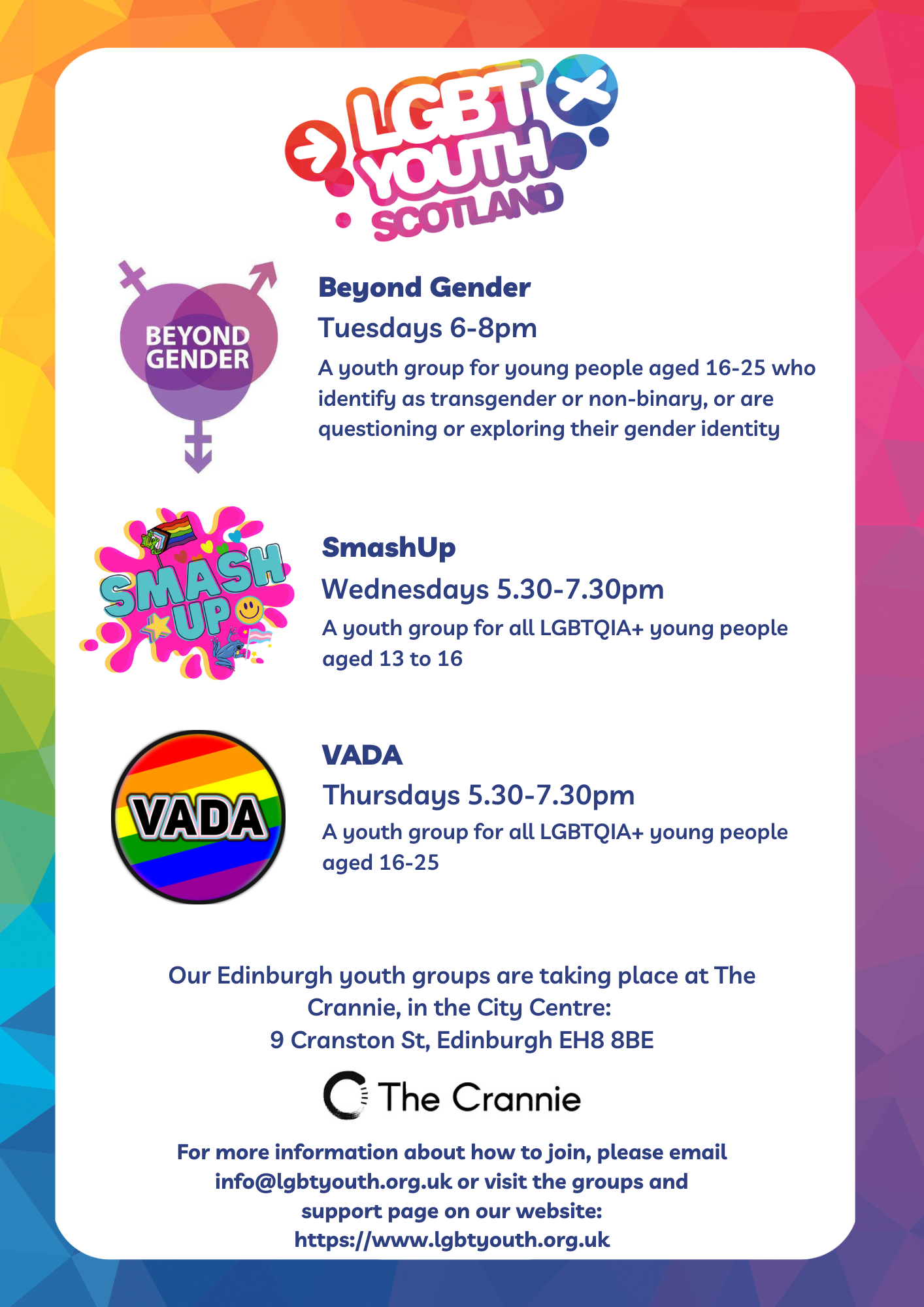 For older students (16+) looking to join a wider community and meet other LGBT individuals through hobbies and events visit LGBT Health and Wellbeing